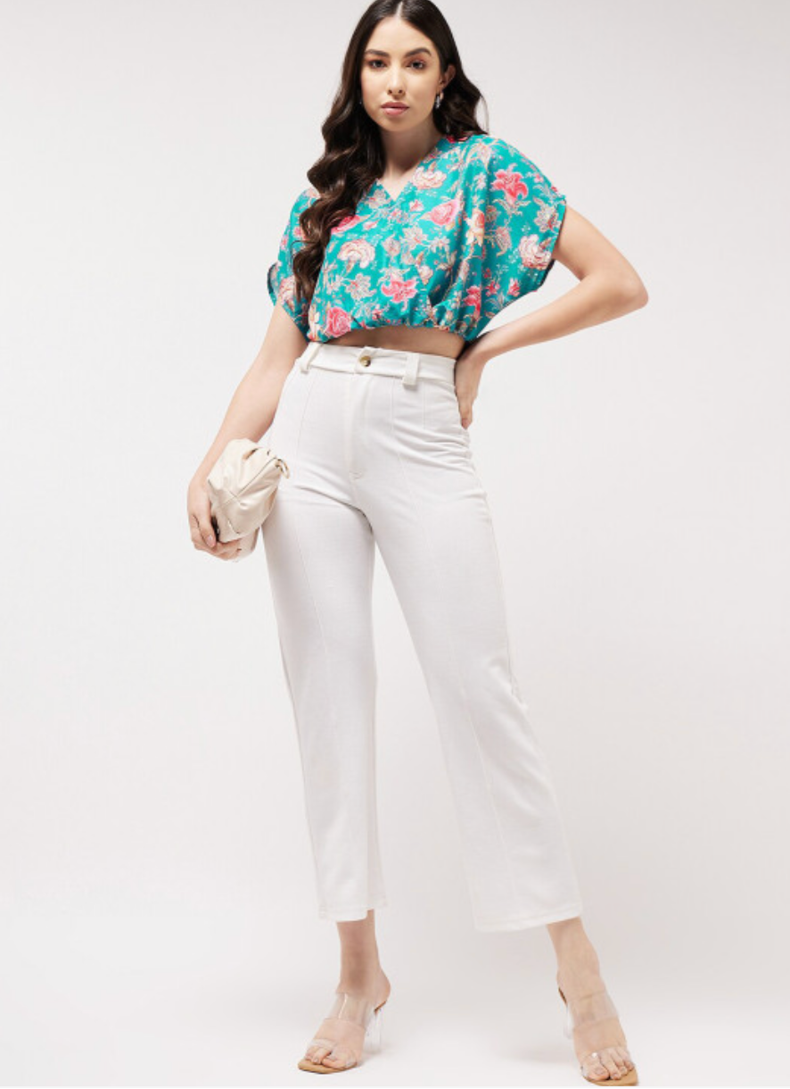 Be the first to review “Floral Printed V-Neck Extended Sleeves Blouson Crop Top”